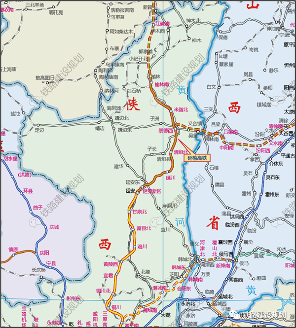 全线共设延安、延安新区、延川、清涧北、绥德西、米脂北、榆林南7座车站。
