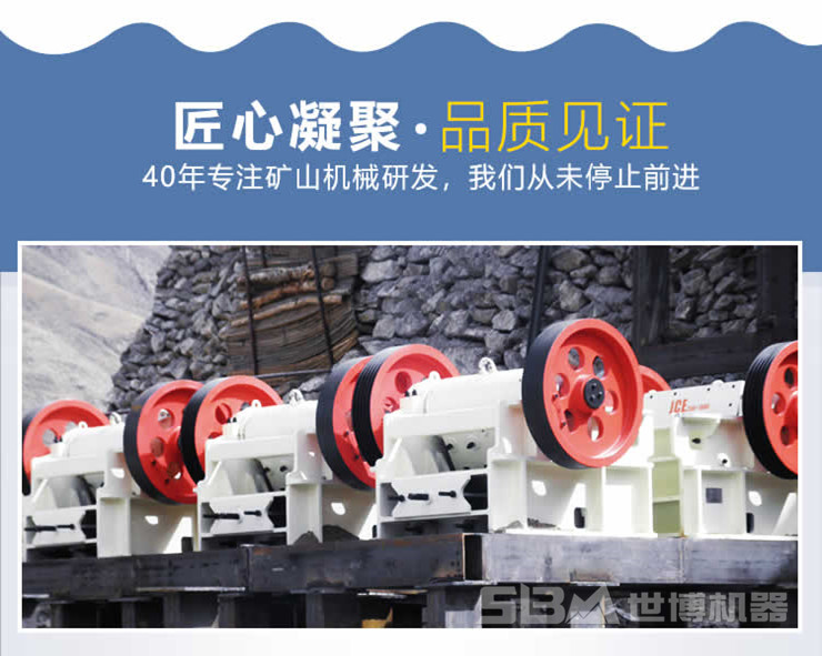 世博机器,是专业生产各种矿山破碎设备的老厂家,拥有40多年的设备制造经验,生产的产品性能和质量是其他厂家无法比拟的,生产的颚式破碎机更是销往全国各地,受到用户的一致好评,而且世博作为直销型厂家,给用户的设备报价更优惠、更合理。如果您有意向购买颚式破碎机,那就来世博,世博将以高品质的设备和优质的服务来回报您的信任!