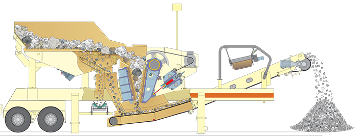 集受料、破碎、传送等工艺设备为一体,通过工艺流程的优化使其具有良好的岩石破碎、骨料生产、露天采矿的破碎作业性能。